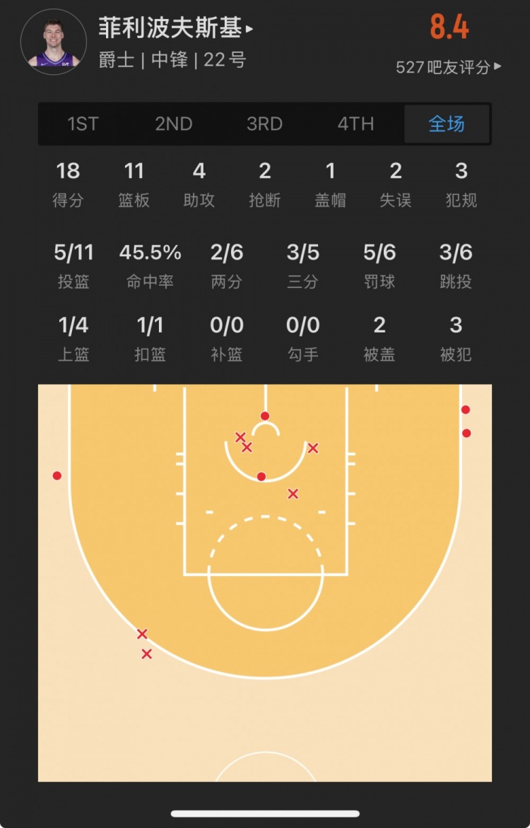 爵士32号秀 凯尔-菲利波夫斯基 登场33.0分钟