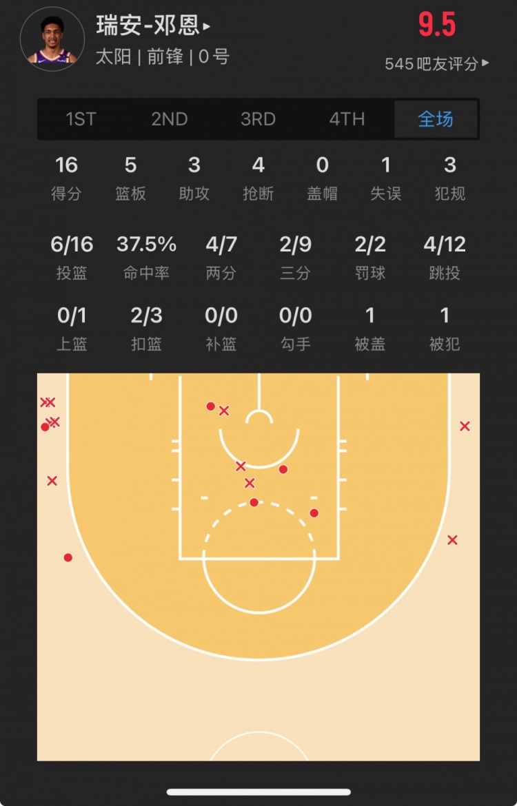 太阳28号秀 瑞安-邓恩 登场33.5分钟