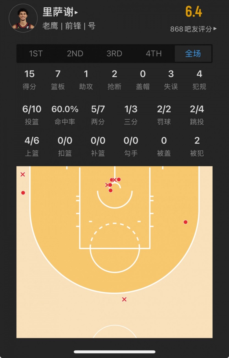 老鹰状元秀 扎卡里-里萨谢 登场36.5分钟