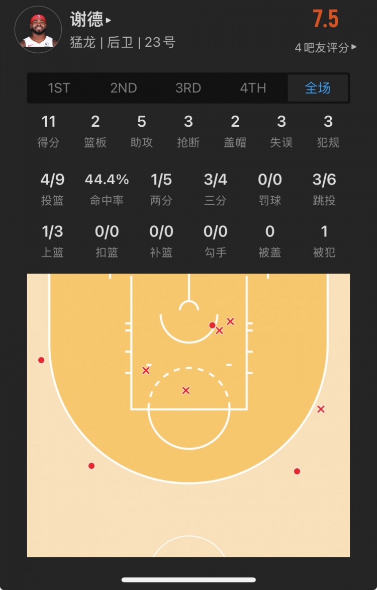 猛龙45号秀 贾马尔-谢德 登场26.6分钟