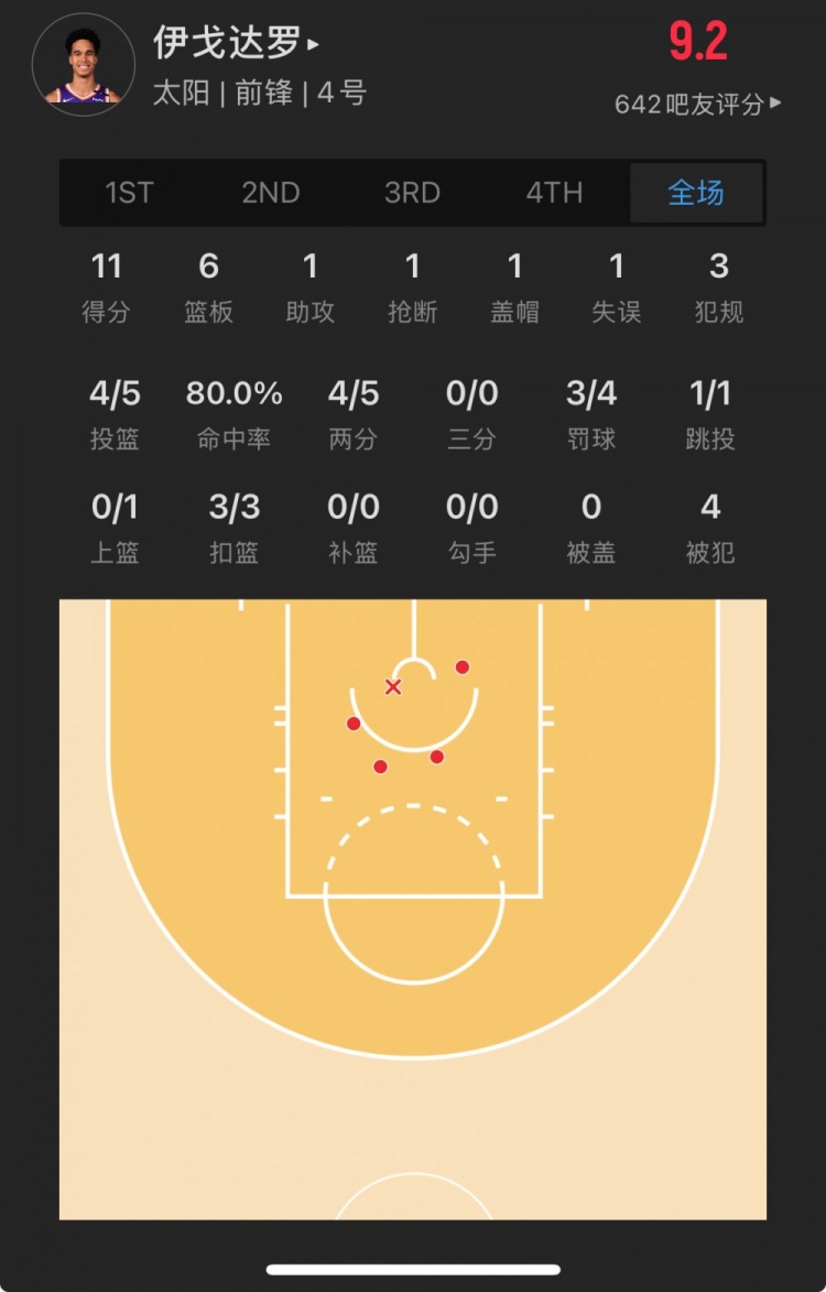 太阳40号秀 奥索-伊戈达罗 登场32.3分钟