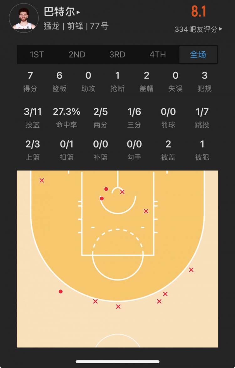 猛龙落选秀 贾米森-巴特尔 登场36.5分钟