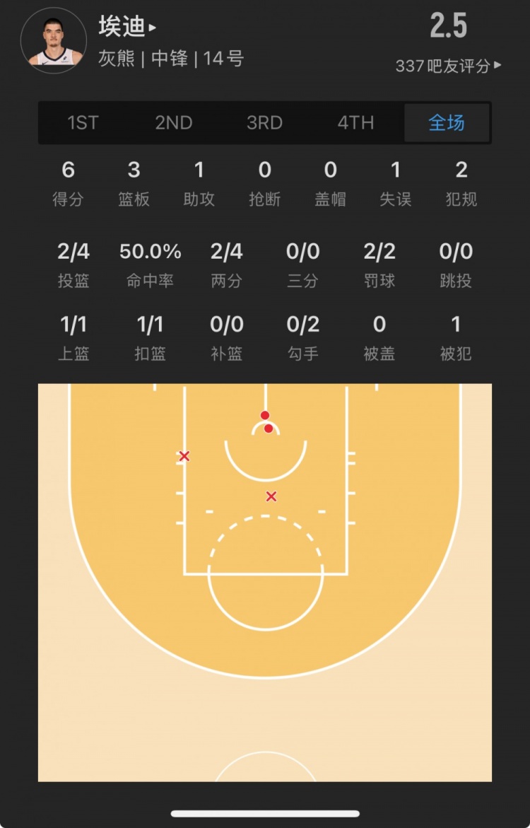 灰熊9号秀 扎克-埃迪 登场10.8分钟
