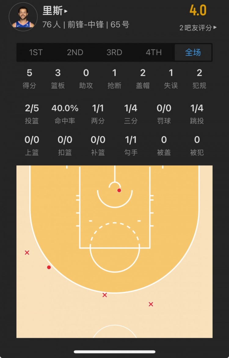 76人落选秀 亚历克斯-里斯 登场18.5分钟