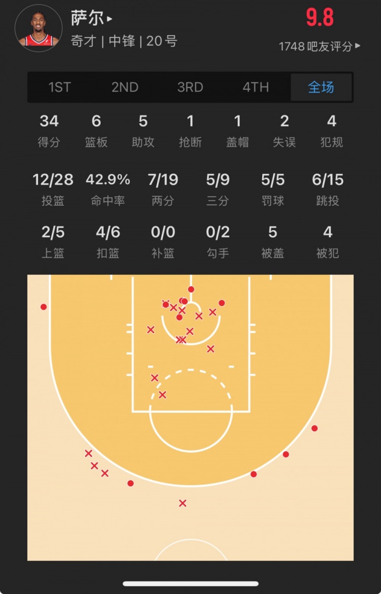 菜鸟丨榜眼萨尔轰34+6+5 热火韦尔献19+11 奇才乔治19分7板6助4断