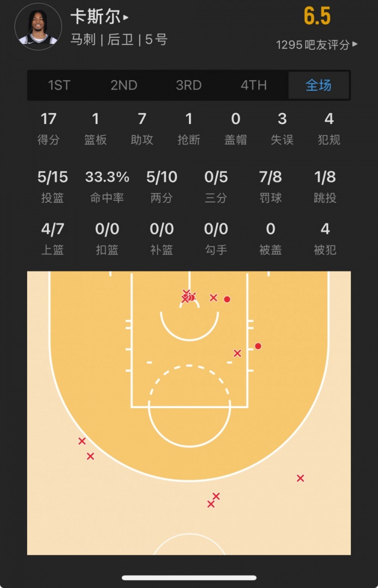 马刺4号秀 斯蒂芬-卡斯尔 登场35.9分钟