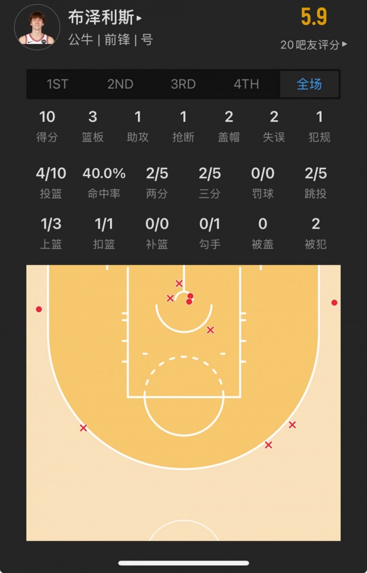 公牛11号秀 马蒂斯-布泽利斯 登场18.7分钟