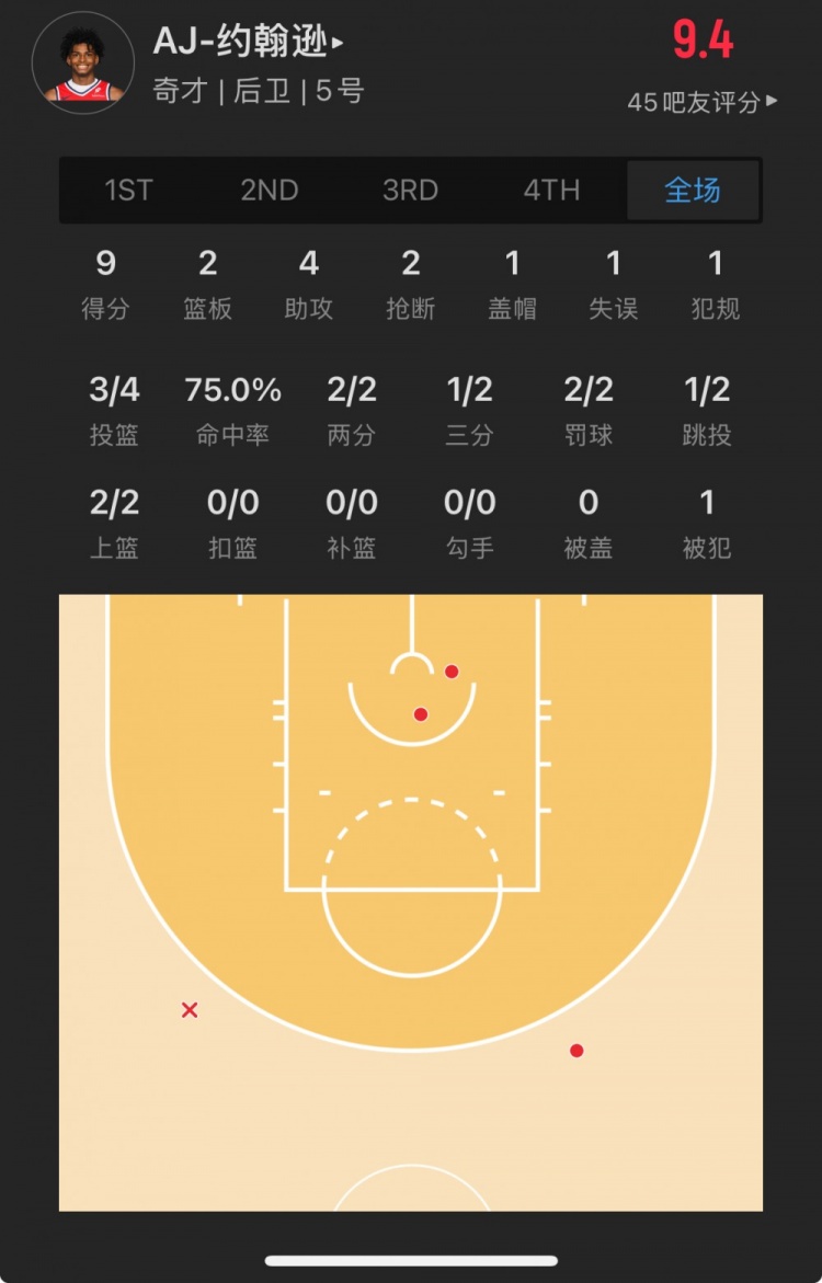 奇才23号秀 AJ-约翰逊 登场17.8分钟
