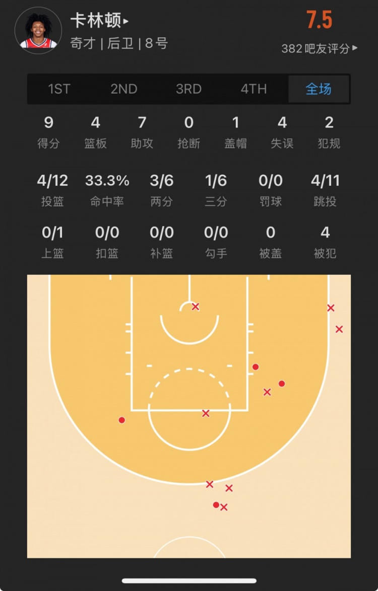 奇才14号秀 卡尔顿-卡林顿 登场30.0分钟