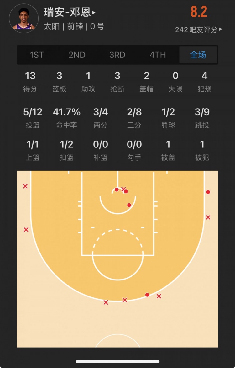 太阳28号秀 瑞安-邓恩 登场23.2分钟