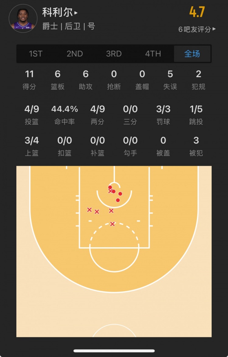 爵士29号秀 以赛亚-科利尔 登场31.4分钟