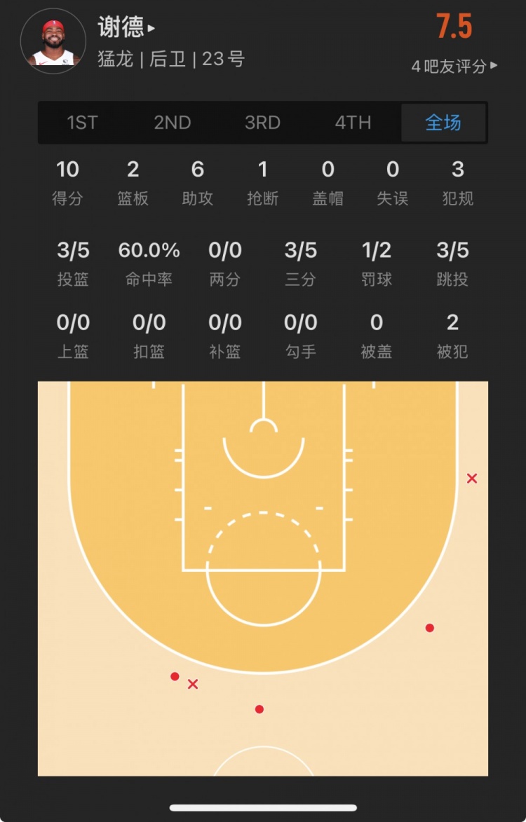 猛龙45号秀 贾马尔-谢德 登场25.2分钟