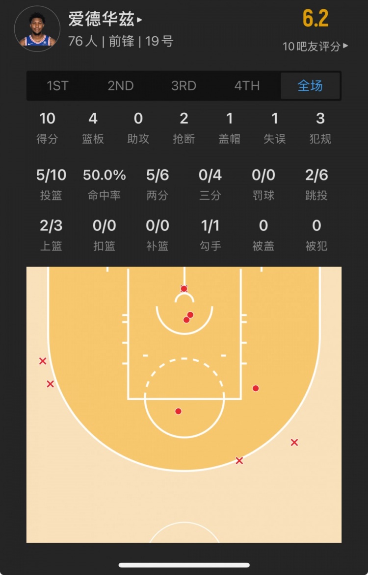 76人落选秀 贾斯汀-爱德华兹 登场21.3分钟