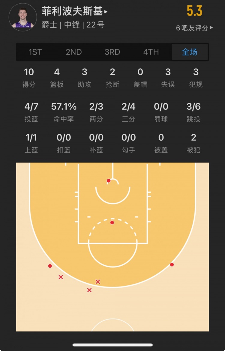 爵士32号秀 凯尔-菲利波夫斯基 登场18.7分钟