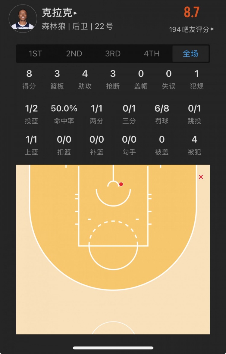 森林狼23年53号秀 杰伦-克拉克 登场16.9分钟