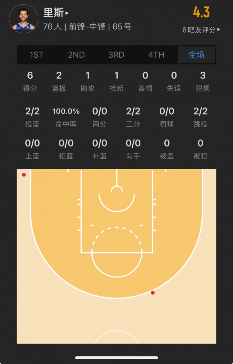 76人落选秀 亚历克斯-里斯 登场17.4分钟