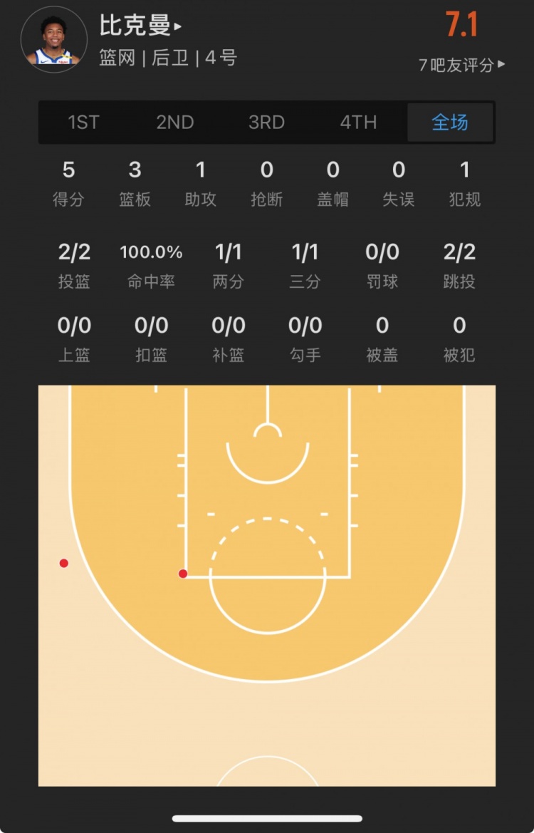 篮网落选秀 里斯-比克曼 登场15.0分钟