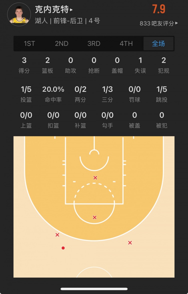 湖人17号秀 道尔顿-克内克特 登场15.6分钟