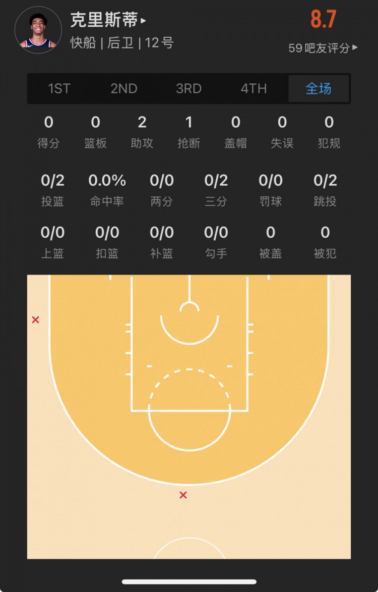 快船46号秀 卡梅隆-克里斯蒂 登场7.4分钟