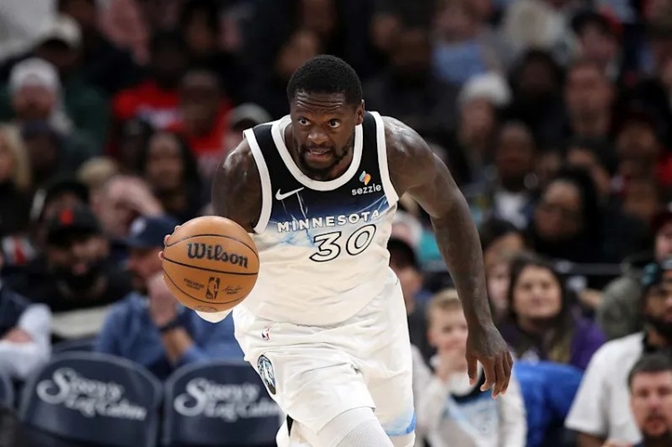 在进一步错开兰德尔和戈贝尔的出场后,森林狼的“五外”进攻占比明显提高,在兰德尔出任中锋的情况下,他给森林狼球迷带来了意外之喜,兰德尔不仅通过更加开阔的空间提升了自己的攻筐表现,他的投篮效率也迎来了爆发。