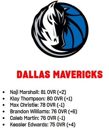 独行侠球员2K能力值更新:克莱+1至80 马绍尔+2克里斯蒂-1 一人+6