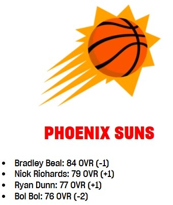 太阳球员2K能力值更新:比尔-1至84 理查兹&邓恩各+1 波尔-2