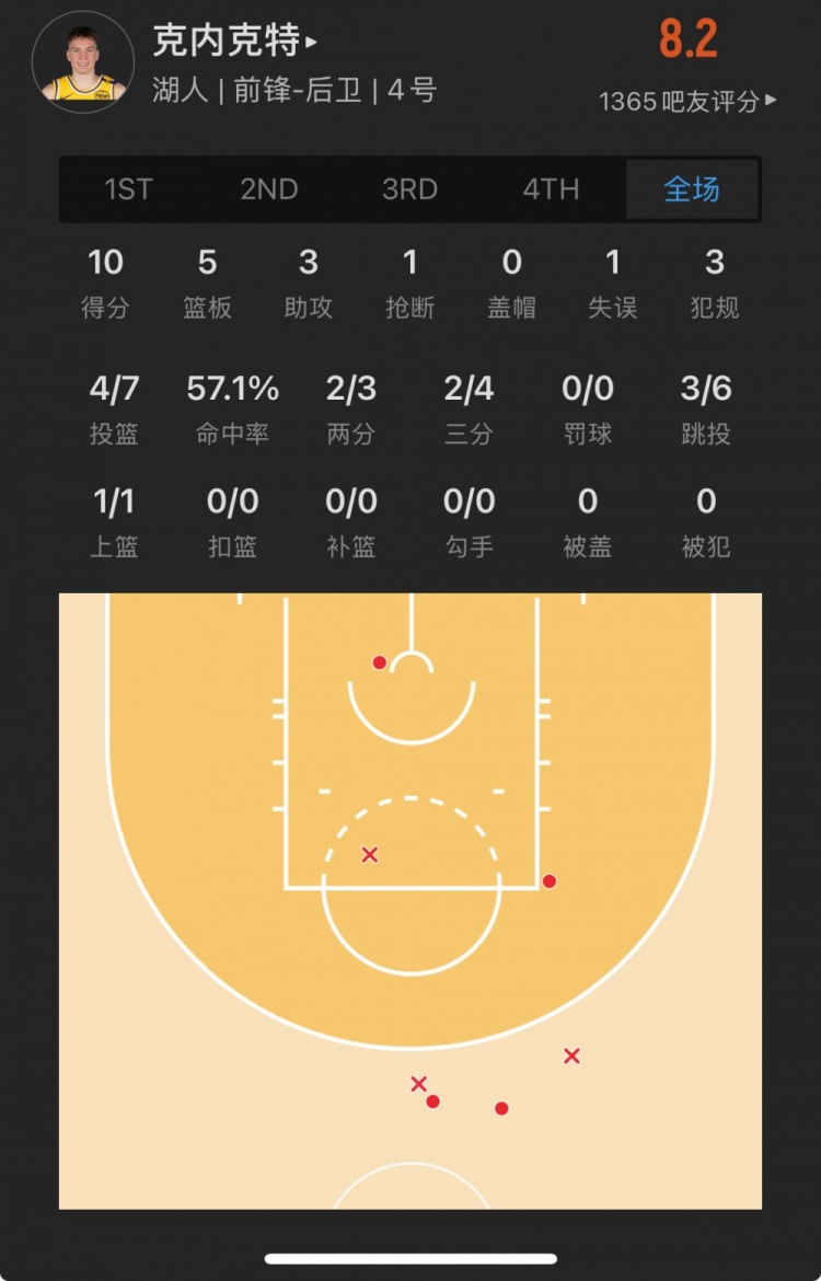 湖人17号秀 道尔顿-克内克特 登场21.9分钟