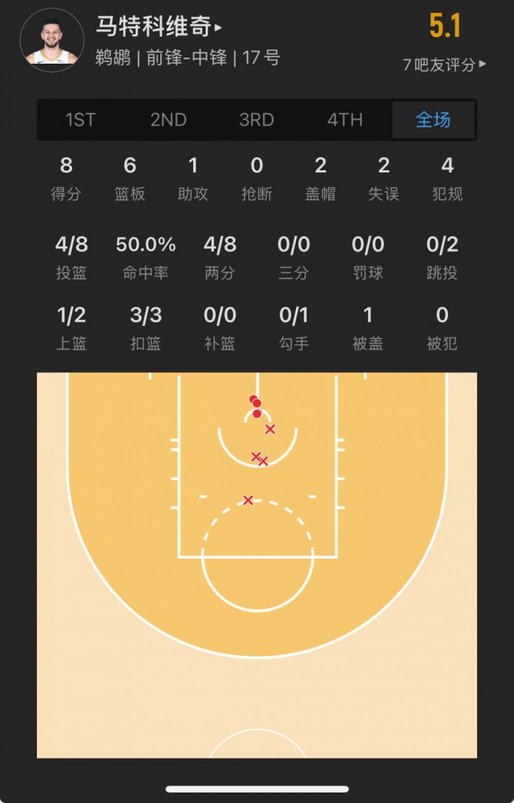 勇士52号秀 昆滕-波斯特 登场20.9分钟